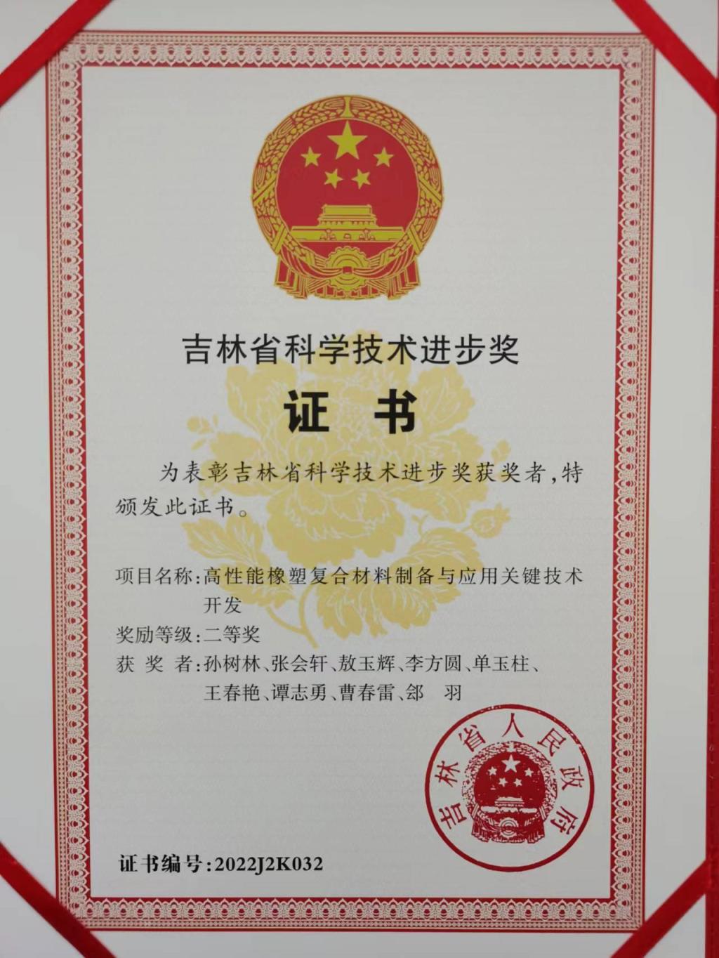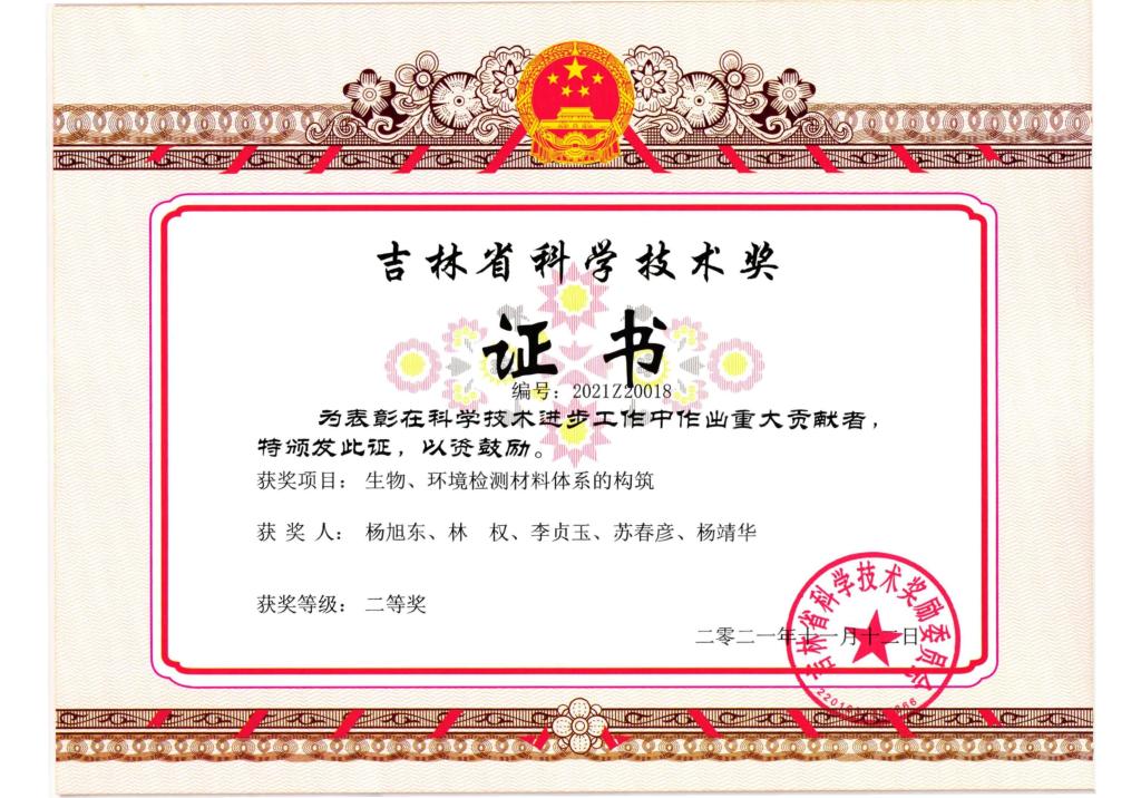 2021年吉林省科学技术奖二等...