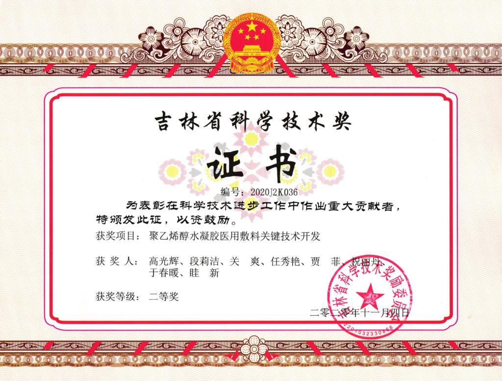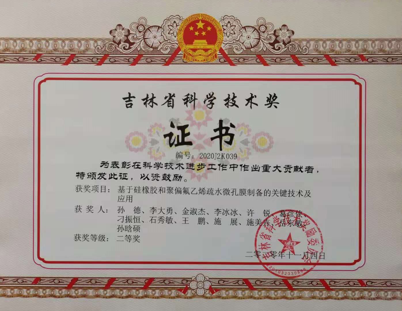 2020年吉林省科学技术奖二等...