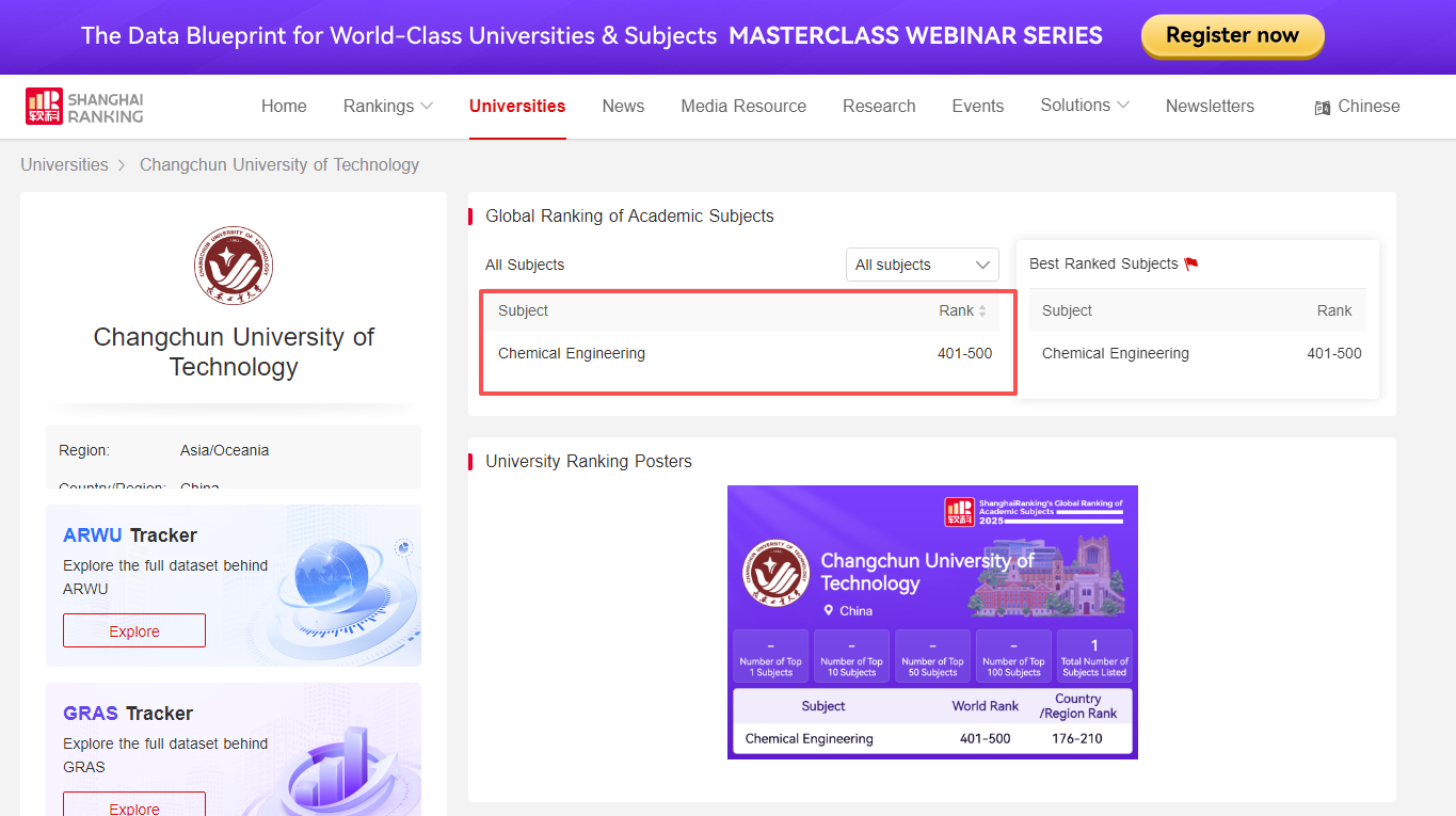 喜报:化学工程学科跻身软科世界一流学科排名前 500!