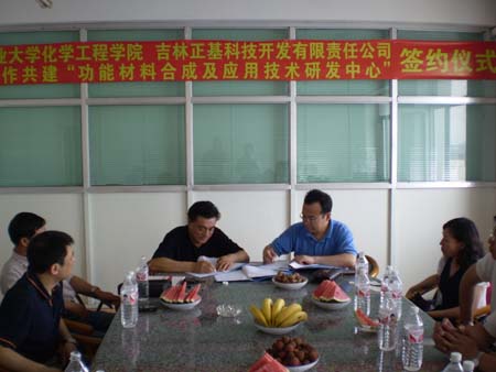 伟德国际victor1946与吉林正基科技开发有限公司于7月18日在吉林正基科技开发有限公司举行了校企合作共建“功能材料合成及应用技术研发中心”签约仪式。