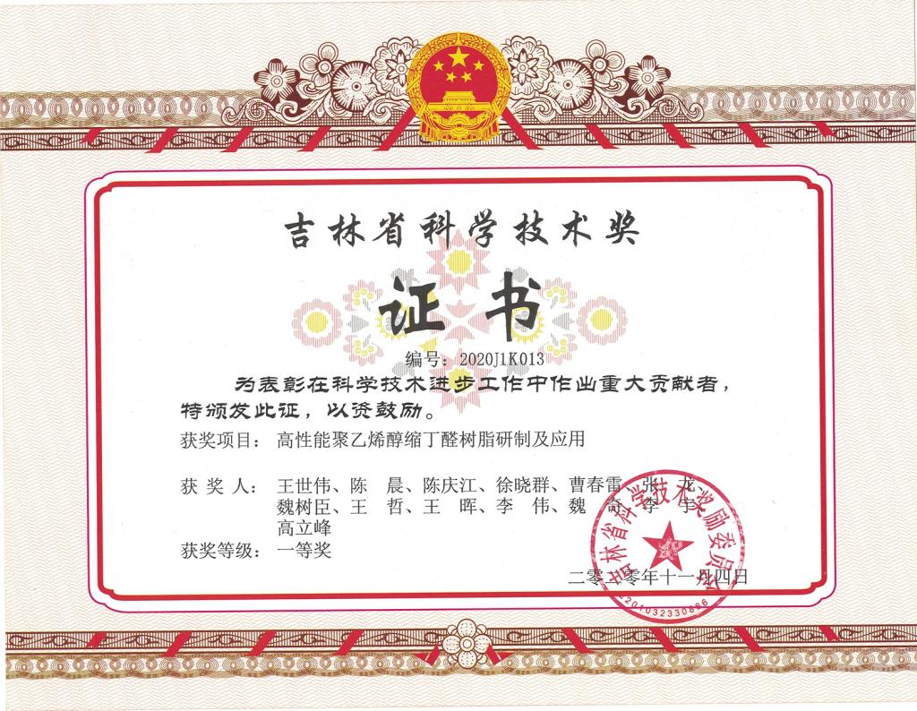2020年吉林省科学技术奖一等奖