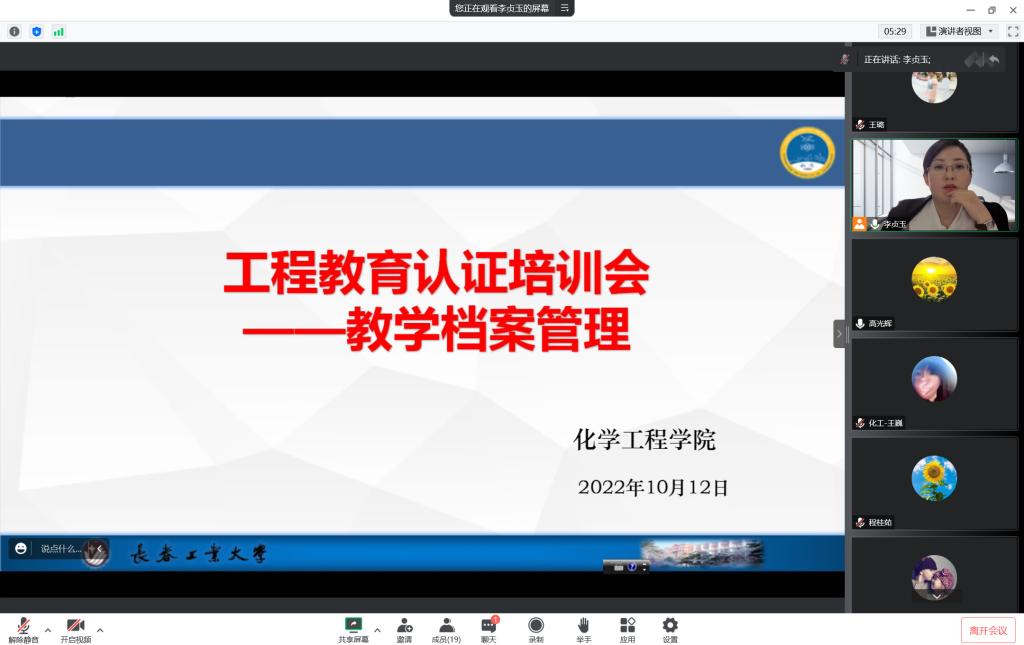 培训会上,李贞玉作了题为《工程教育认证培训会——教学档案管理》的培训报告。报告结合工程教育专业认证新形势,对标工程教育专业认证的标准和国家教学质量标准,对做好认证工作和建设一流专业作了深度剖析。重点介绍了工程认证相关的教学档案归档要求,对课程类型和内容要点进行了详细说明。并以《化工原理》课程为例进行了指标点分解的实际操作过程。