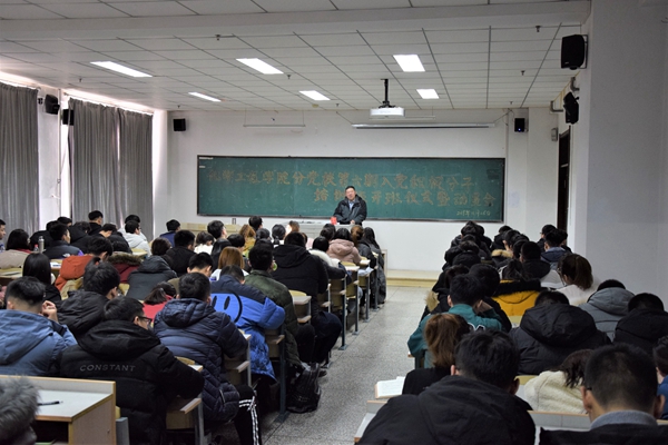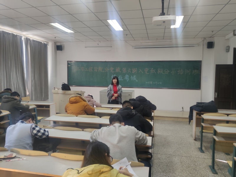 本次培训班自11月26日开班以来,分别在南湖和北湖两个校区同时培训。期间学院党委书记、专职组织员、团委书记、学生党支部书记为本次培训班学员授课,授课内容涵盖了如何端正入党动机、党的基本知识、入党流程、如何对标党员标准坚定理想信念、党与共青团的关系等内容。整个培训过程中,学院分党校加强对日常出勤的考核力度,将平时考核纳入最终结业成绩的一部分;并在结业考试中进行改革,打破以往只考选择题的传统,增加填空题和简答题,加大考核难度,达到了预期效果。