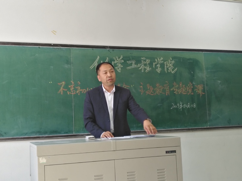 2019年10月15日,学院副书记曹永利在综合楼第一阶梯教室为研究生上了题为《不忘初心、牢记使命 为祖国发展努力奋进》的专题党课。讲课过程中,曹永利勉励同学们:作为一名学生党员要坚守自己的初心,明确身上的历史责任和使命,要在学习科研上努力奋进,为国家发展贡献力量。
