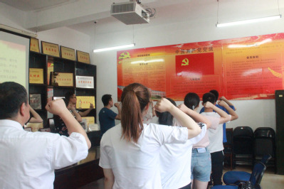活动伊始,刘喜明带领支部全体党员举起右拳,在党旗下接受心灵的净化和洗礼,重温入党时的决心和理想。宣誓完毕后,刘书记对全体党员提出了要求和希望:我们应时刻牢记入党誓词,不忘初衷,在今后的学习中以党员标准严格要求自己,始终保持党员先进性,以更加饱满的精神、更加优异的成绩践行对党的庄严承诺。随后,全体党员共同观看政论专题片《不忘初心·继续前行2》,完整地再现了我党5年来的壮阔历程和恢宏画卷,生动展现了以习近平同志为核心的党中央与广大人民同心同德、携手奋斗,将中华民族伟大复兴推进到新的时代高度的美好画面。