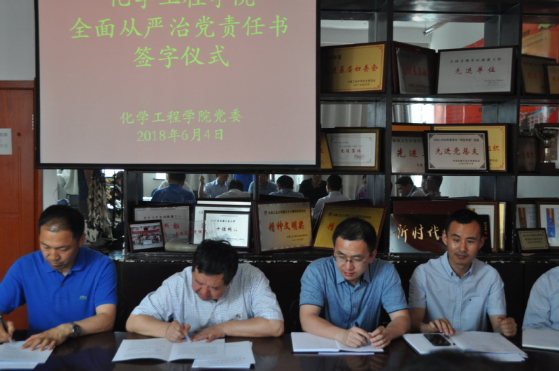 (通讯员肖芳)2018年6月4日,伟德国际victor1946党委全面从严治党责任书签字仪式在学院四楼党建活动室举行。会议由党委书记刘喜明主持,学院党政领导班子成员、教工党支部书记和学生党支部书记参加了签字仪式。