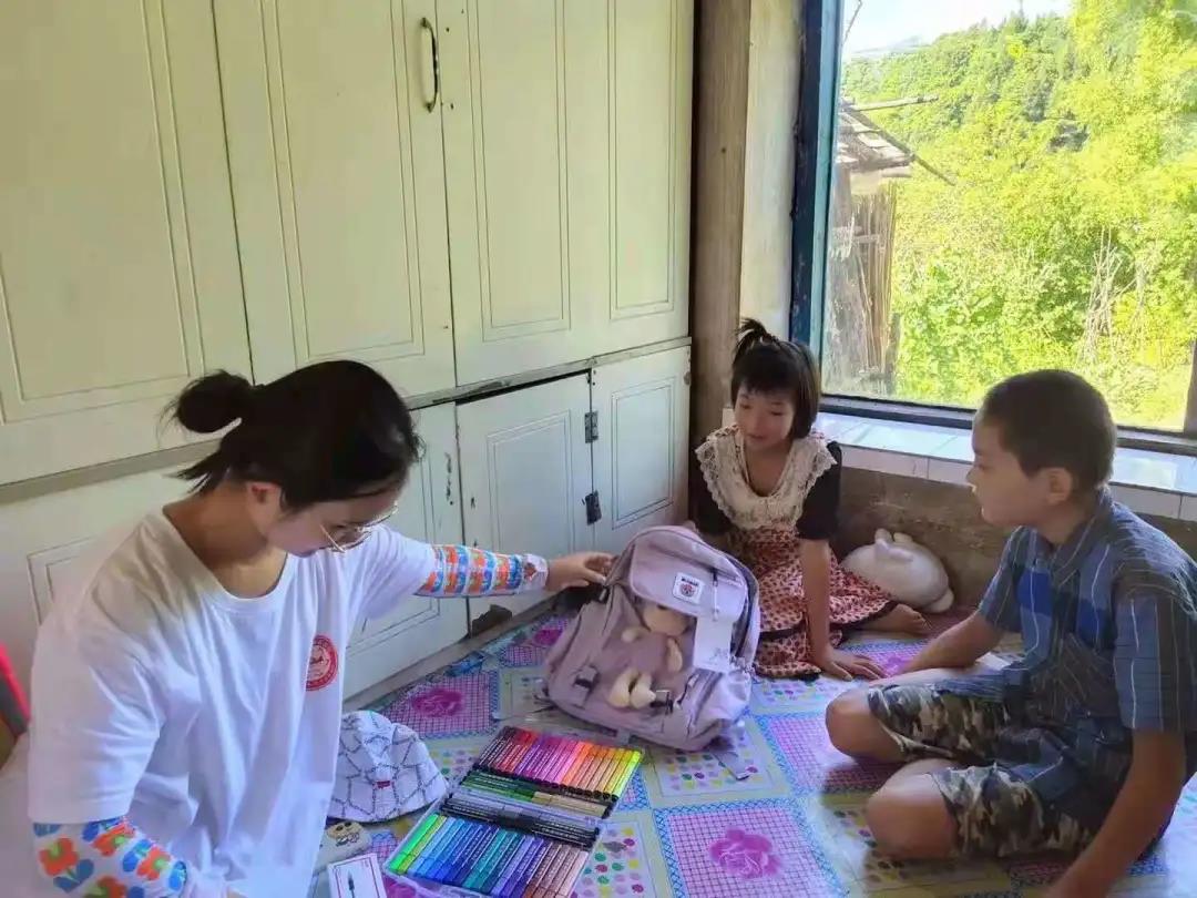 团队成员带上了书包、文具、水彩笔等众多学习用品来到小朋友的家里,与她们分享学习和校园生活。