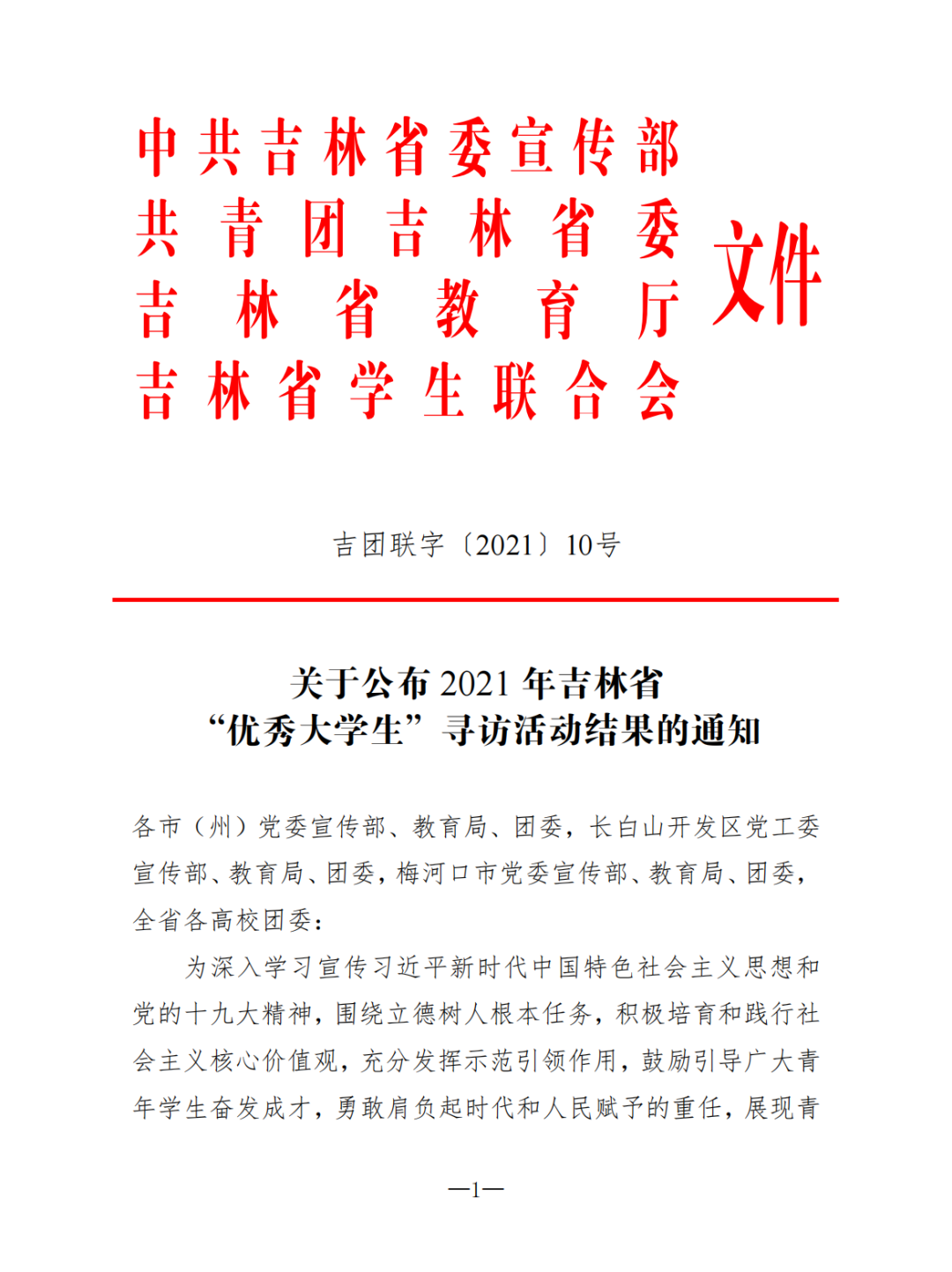 近日,由中共吉林省委宣传部、共青团吉林省委、吉林省教育厅、吉林省学生联合会联合开展的2021年吉林省“优秀大学生”寻访活动结果予以公布。我院2017级高分子材料与工程专业刘香池同学获评“吉林省优秀大学生”。