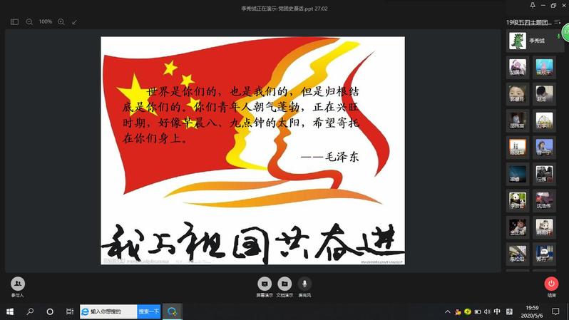 新闻网讯(通讯员陈思琦)为了进一步学习贯彻习近平总书记五·四讲话精神,引导团员青年领悟五·四运动的时代意义,提升青年团员的思想政治水平。5月6日,伟德国际victor1946分团校开展“五·四精神”主题团课。团课由学院团委兼职副书记、2019级辅导员李秀绒老师主讲,2019级团学干部参与了团课学习。