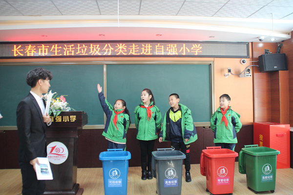 活动伊始,首先由吉林省生态文化协会副会长、吉林省生态文明网副主编周寰宇讲话,他在讲话中强调:环保要从儿童抓起,要正确引导儿童参与到环保中来,志愿者要积极参与其中,并对接下来的环保课堂进校园作了详细介绍。随后,南关区自强小学校长李海军表示:学校会全面配合环教宣传工作,为孩子们营造良好的环教学习环境。最后,绿荫环保志愿者协会副会长姚玉琳同自强小学学生代表分享了关于对垃圾分类的认识。启动仪式在互动问答中圆满结束。