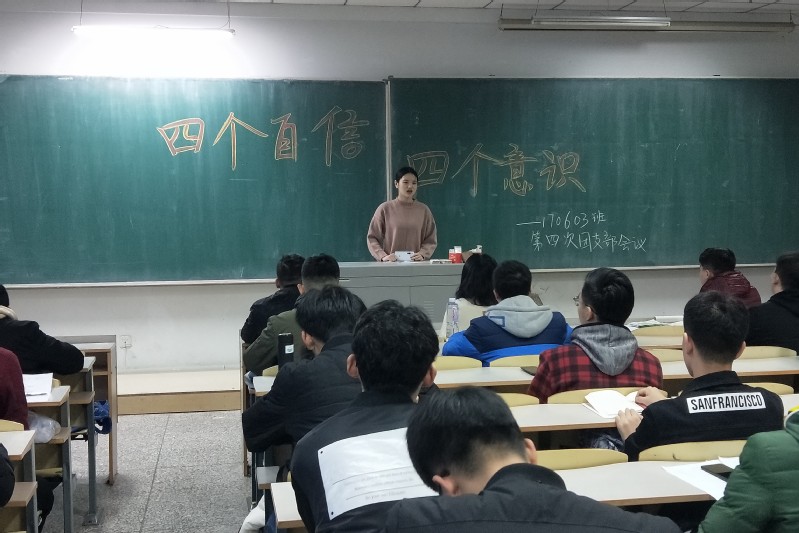 会上,团支部书记刘香池首先向同学们介绍了“四个意识”及“四个自信”的内容。接着着重阐述了“四个意识”和“四个自信”的重要性。她强调“意识”确立了发展方向的大问题,决定了我们要举什么旗,走什么路,而“自信”则帮助我们坚定实现伟大中国梦的决心。随后,徐岳林同学进行发言,他认为作为新时代的大学生应该树立“四个意识”,坚定“四个自信”,牢记使命,学会担当。最后,团支部副书记刘蒙呼吁大家要将“四个意识”、“四个自信”落实到学习中,切实到行动上,自觉做习近平新时代中国特色社会主义思想的坚定信仰者、忠实实践者和有力传播者。