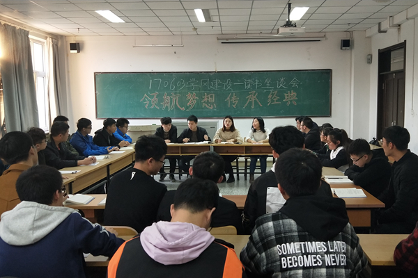 新闻网讯(通讯员宋佳音)为提高大学生文化知识素养,稳定推进学校和学院学风建设工作,巩固“青年大学习”活动成果。伟德国际victor1946170603班团支部于11月12日在南湖校区科研楼2620室开展了“领航梦想,传承经典”主题读书座谈会。此次座谈会由团支部书记刘香池主持,170603班团支部全体成员参加了此次座谈会。