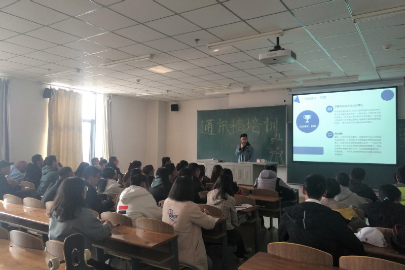 新闻网讯(通讯员井明宇 孙畅)为了使团委新成员尽快融入日常工作中来,进一步宣传好我院团学组织工作。伟德国际victor1946团委于11月3日在北湖校区主楼1520教室举行通讯稿写作培训会,本次培训由团委宣传部副部长于添政主讲。2018级团委全体成员及各班团支部委员均参加了本次培训。