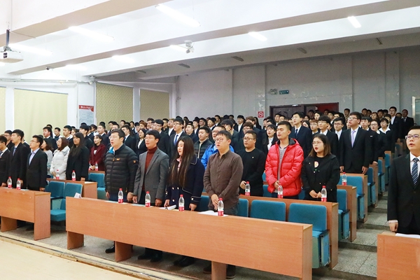 成立大会在庄严的国歌声中拉开帷幕。首先由院团委书记杨楠老师宣读了学院十届三任团委、学生会、社团联合会主要学生干部名单。学院十届二任团委副书记何英伟代表上一任团学组织进行了工作总结,新任学生会主席马昊楠做了工作展望。随后,在团委副书记刘懿宽的带领下,全体新任学生干部庄严宣誓,整齐嘹亮的声音表达了全体学生干部服务同学、务实创新的决心。最后,学院党委副书记曹永利老师做了重要讲话,他首先代表学院党委对新一届学生组织的成立表示祝贺。并强调作为学生干部要抱着服务学生的态度,有本领、有理想、有担当,甘于奉献,不断提高自身综合素质。希望全体学生干部能继承并发扬学院的优良传统,为新时期学院团学工作更好的开展贡献青春力量。