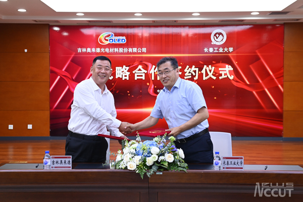 在双方与会人员的共同见证下,张明耀与轩景泉签署了《伟德bv1946与吉林奥来德光电材料股份有限公司战略合作协议书》。