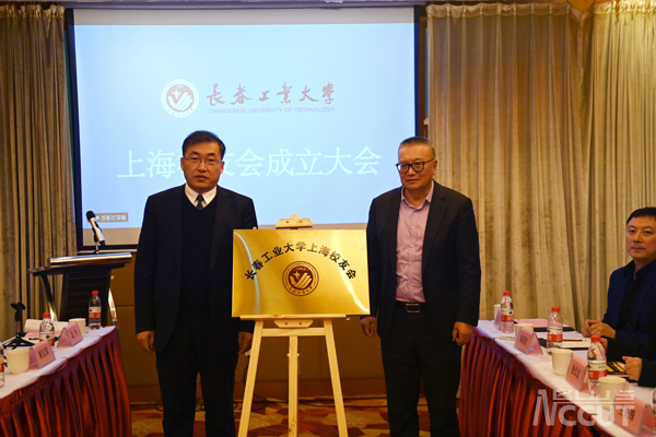 孙长智在大会上致辞。张明耀与刘东立共同为校友会揭牌。
