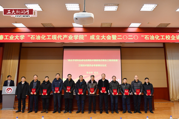 新闻网讯(通讯员孙树林)12月18日学校“石油化工现代产业学院”成立大会暨二零二零“石油化工校企论坛”在南湖校区学术报告厅举行。吉林省教育厅高教处处长宋辉,校长张会轩,副校长李占国出席会议,成立大会由副校长张明耀主持。吉林大学、中科院长春应用化学研究所、中国石油吉林石化公司研究院、吉林石化公司合成树脂厂、辽阳石化公司、大庆石化公司、中国中车长春轨道客车股份有限公司、吉林碳谷碳纤维股份有限公司、吉林精功碳纤维有限公司、吉林国兴复合材料有限公司、中国兵器北方华锦集团有限公司、天津利安隆新材料股份有限公司、双辽昊华化工有限公司、吉林省开顺新材料有限公司、长春吉原生物科技有限公司、吉林华邦新材料科技有限公司、吉林省龙展新材料科技有限公司、吉林中科金盛科技有限公司、吉林伊特胶管有限公司等二十二位专家学者代表出席本次会议。