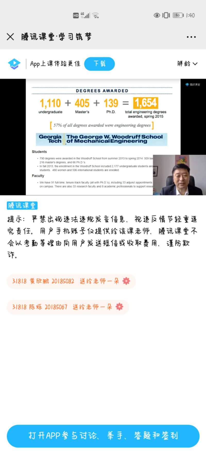 (通讯员:程晓印) 为了帮助学生系好人生的“第一粒扣子”,用正确的理想信念培育祖国的建设者和接班人。2020年5月22日13:30分,伟德bv1946校长张会轩利用腾讯课堂平台为应用技术学院2018级机电一体化技术、数控技术专业共195名学生讲授了一次意义重大的学习筑梦课。