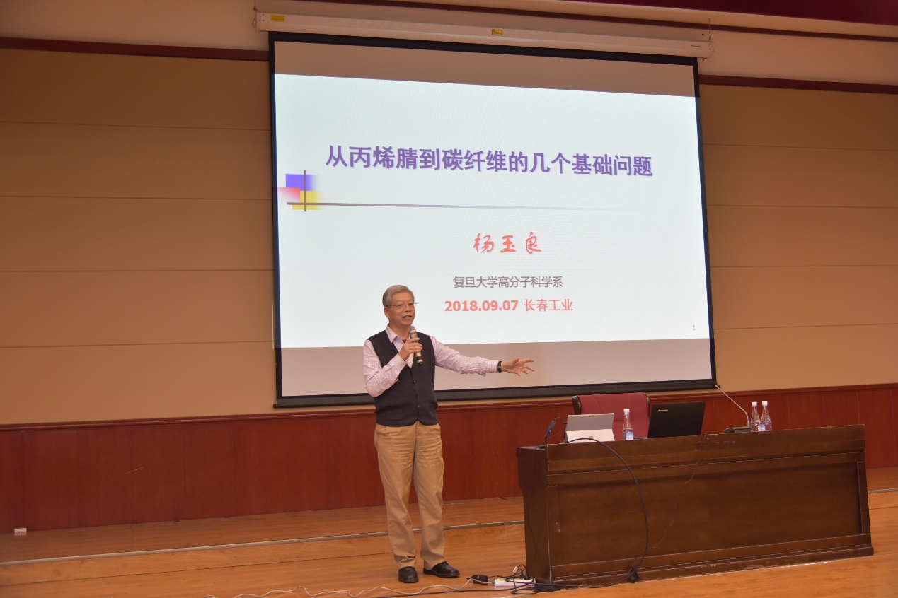 报告会上,张会轩校长向杨玉良院士颁发了名誉教授聘书,并高度赞扬了杨玉良教授在“高分子化学”科研领域上取得的一系列成就。随后,杨玉良院士向大家讲解了由丙烯晴制造碳纤维的科学过程,用生动、平实的语言,深奥、形象的模型,丰富、据实的数据阐述了在碳纤维研究与产业化中取得的成果。(审核人: 吴广峰)
