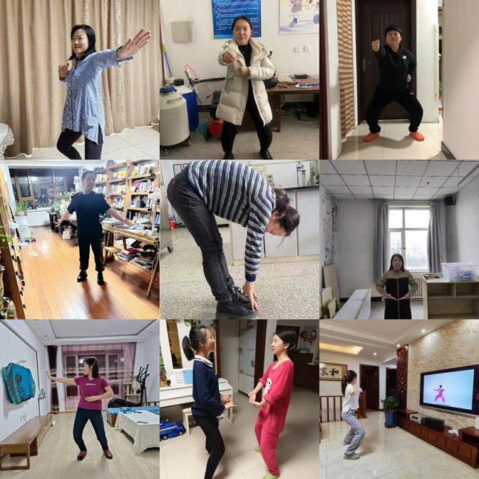 我院女教职工积极响应活动号召,伴随着优美的音乐,一招一式,动作舒展,动静相兼,刚柔并济,意动形随,共同演绎了八段锦的自然与和谐之美,展现出教职工积极进取、健康向上的精神风貌,在家庭、学校掀起了一股学习练习八段锦的热潮。