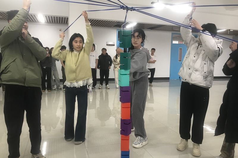 最具挑战性的当属“合力搭建”项目。在这个项目中,队员们全程禁语,仅能依靠手势与眼神进行沟通配合,共同完成积木塔的垂直搭建。各代表队队员们全神贯注,通过微妙的手势和眼神交流,小心翼翼地搭建着积木塔。经过一番激烈的较量,戴文博代表队凭借着极高的默契与出色的沟通协作能力,成功搭建出最高最稳的积木塔,荣获第一名;沈佳昊代表队和王佳玉代表队也凭借不俗的表现,分别获得第二名和第三名。