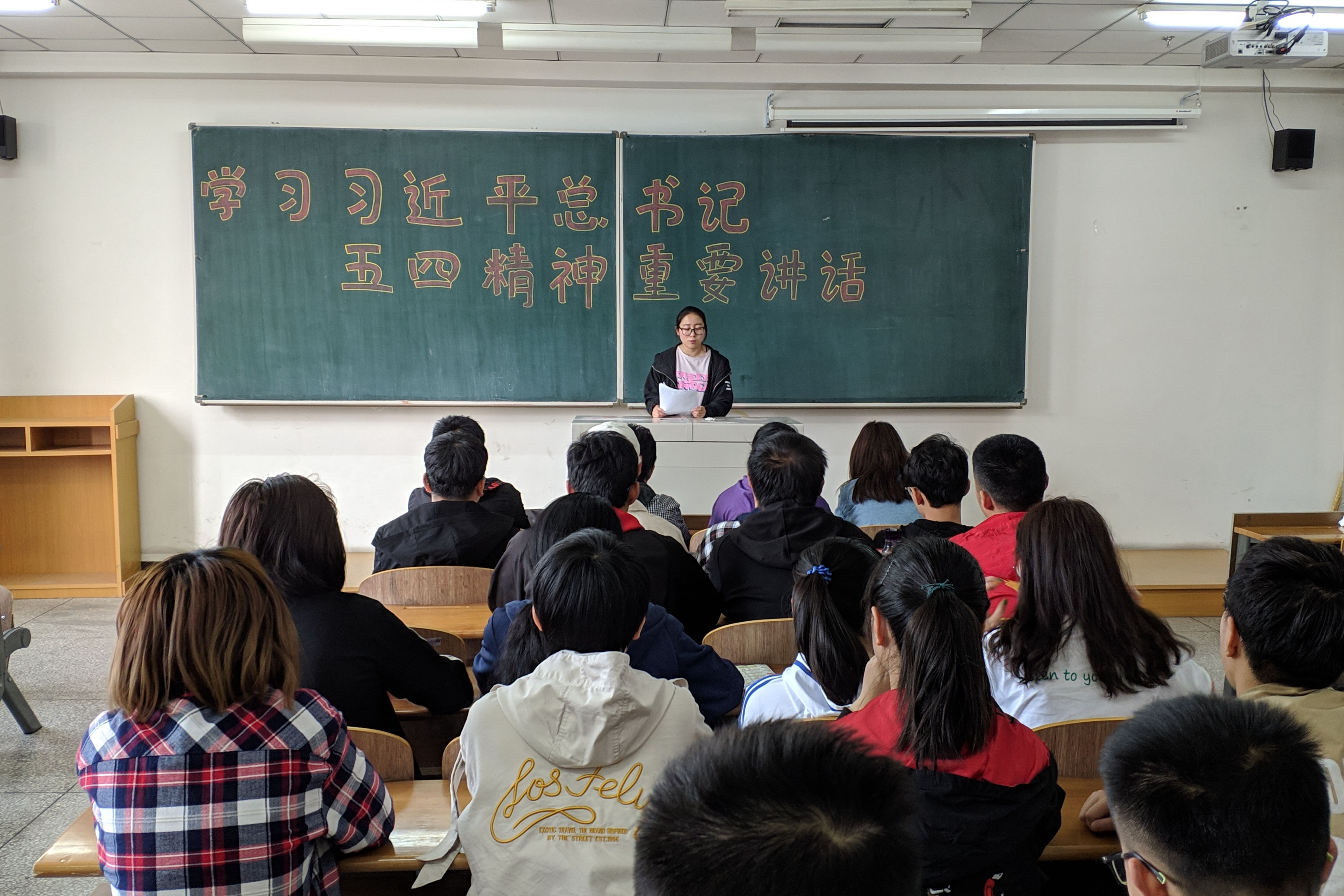 各团支部书记在学习中简要介绍了五四运动的时代背景和发展经过。各支部成员就习近平总书记在纪念大会上讲话内容中的“奋斗”“青春理想”“担当”等关键词展开激烈讨论,深入探究了五四精神在新时代民族复兴长征路上所具有的时代价值以及当代青年所担负的历史使命和民族责任。最后,各团支部书记强调了总书记对新时代青年提出的六点要求,希望大家树立远大理想,热爱伟大祖国,担当时代责任,勇于砥砺奋斗,练就过硬本领,锤炼品德修为。同时告诫同学们在今后的学习生活中,要继续发扬伟大的五四精神,在学习中增长知识、锤炼品格、练就本领,以真才实学和创新创造服务人民、贡献国家!