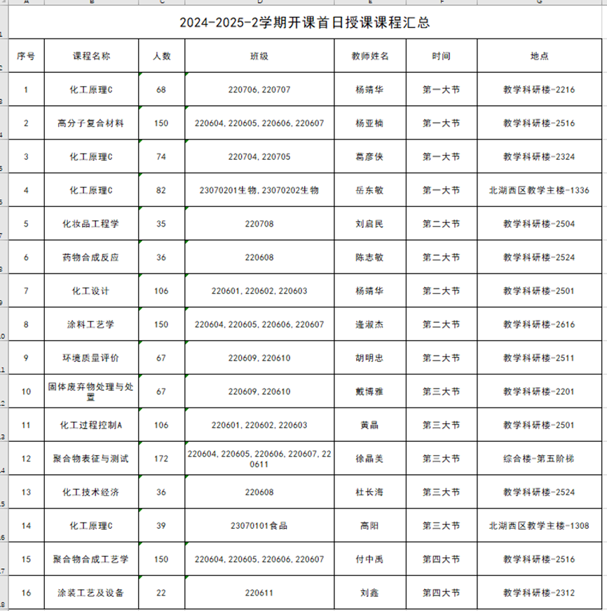 院领导随机选取《化工原理》、《化工设计》、《高分子复合材料》《环境质量评价》、《涂料工艺学》、《化妆品工程学》、《药物合成反应》等核心课程进行随堂听课,全程记录教学环节设计、课程思政融入及学生参与度情况。课后,学院院长与任课教师就教学内容优化、课堂互动形式创新等展开交流,强调以学生为中心的教学理念,鼓励教师结合工程教育认证要求,持续深化课程改革。